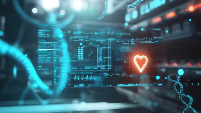 Futuristic Interface With Glowing Digital Dna And Data Visualization Images