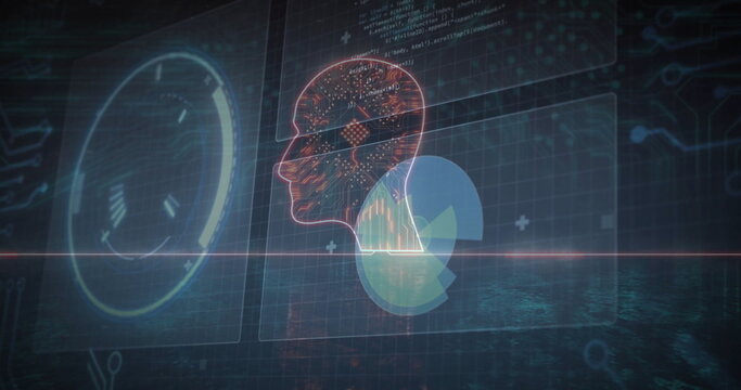 Futuristic digital hud interface with streaming code and data visuals