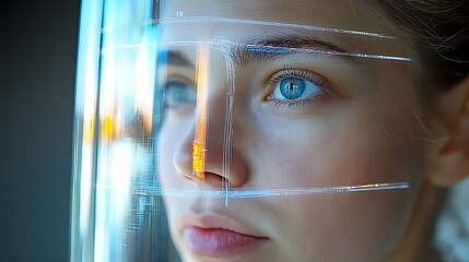Futuristic digital interface with scanning panel and data overlays