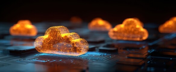 The Cloud Network Visualizing Futuristic Glowing Data Nodes on a Circuit Board