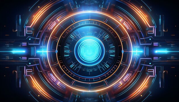Futuristic glowing interface with neon circles