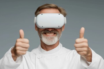 Chef experiences virtual reality technology at culinary event in modern kitchen