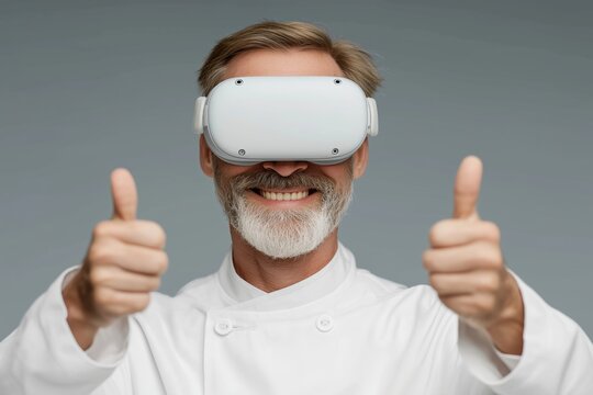 Culinary innovation with virtual reality: chef exploring futuristic cooking techniques in a modern kitchen environment