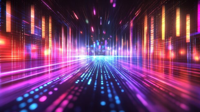 Dynamic Energy Trails, Remote Work, Digital Space, Abstract Visualization, Futuristic Environment, High-Tech Perspective
