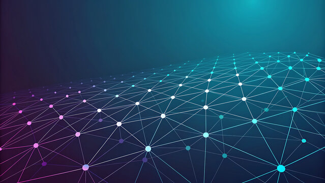 Dynamic interconnected network of glowing nodes and lines creates a futuristic digital web for technology concepts