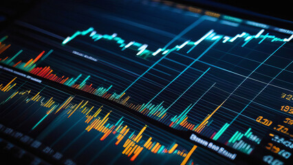 Futuristic digital interface with binary code and graphs