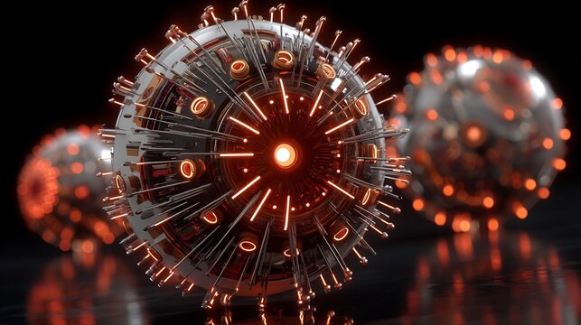Futuristic representation of disease with metallic and glowing elements 3D render