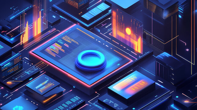 Futuristic data analytics interface on digital grid