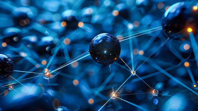 Abstract digital molecular structures with network connections