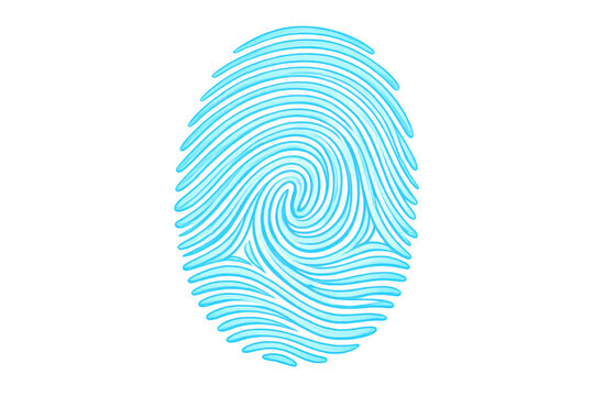 Digital blue glowing fingerprint icon symbolizing cutting-edge biometric security, personal identity verification, and data protection. Transparent background
