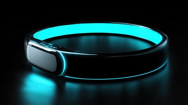 Futuristic glowing blue smart band.