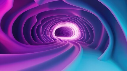 Shimmering futuristic corridor with neon strips toward circular portal opening in metallic tunnel