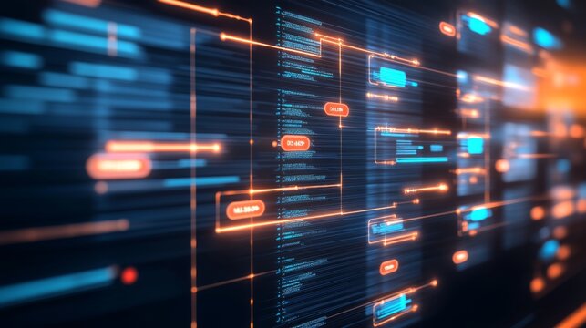 Futuristic Network Nodes With Coding Interface And Connectivity Theme Images