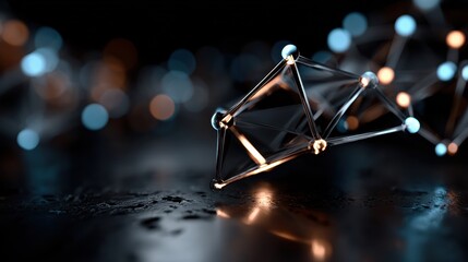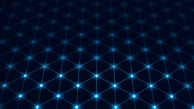 Abstract digital network with interconnected nodes and glowing lines on a dark background