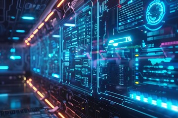 Glowing NFT cube interface on futuristic digital platform, cryptocurrency and token concept