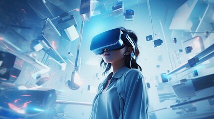 Futuristic metaverse concept with digital interface overlay