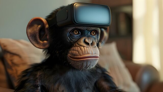 NFT collection featuring 3D monkey character in virtual reality metaverse technology. Concept NFTs, 3D Modeling, Virtual Reality, Metaverse Technology, Monkey Character