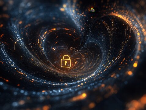 Abstract Data Vortex with Glowing Padlock Cybersecurity and Digital Security Concept