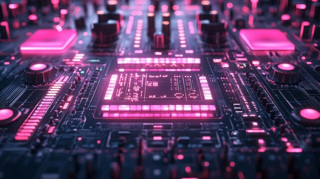 Pink Neon Circuit Board, A Detailed Look at Modern Electronic Components and Their Intricate Design Showing Power and Complexity