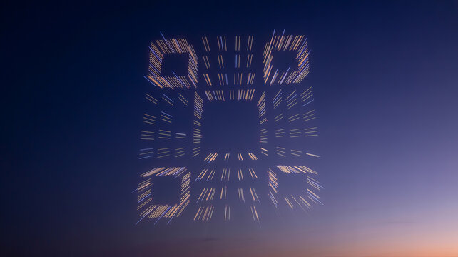 QR Code against Twilight Sky: An artistic rendering of a QR code stands out against the gradient twilight sky, a symbol of modern information.