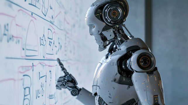 Robotic arm analyzing digital mathematical equations
