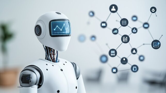 Futuristic ai robot with networking concepts and mathematical background