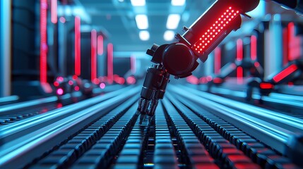 Futuristic robotic arm in high-tech lab illuminating data