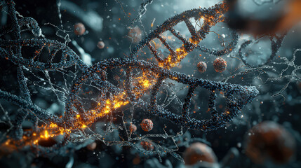Glowing DNA strand is depicted in digital illustration, showcasing futuristic and scientific theme