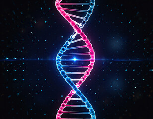 Futuristic DNA strand, symbol of science and innovation. Vivid colors  starry backdrop. Ideal for biotech, medicine, or technology themes. Modern, impactful.