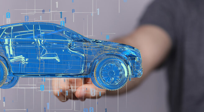 Couple sharing warm smile while driving, making eye contact in car front seats