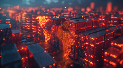 Futuristic server rack with digital light effects