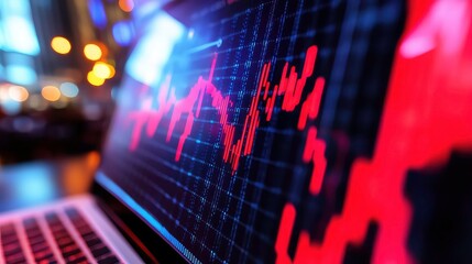 Laptop Displaying Stock Market Downtrend, Financial Analysis on Digital Screen
