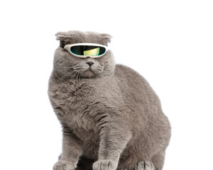 close up of cool gray cat wearing future sunglasses