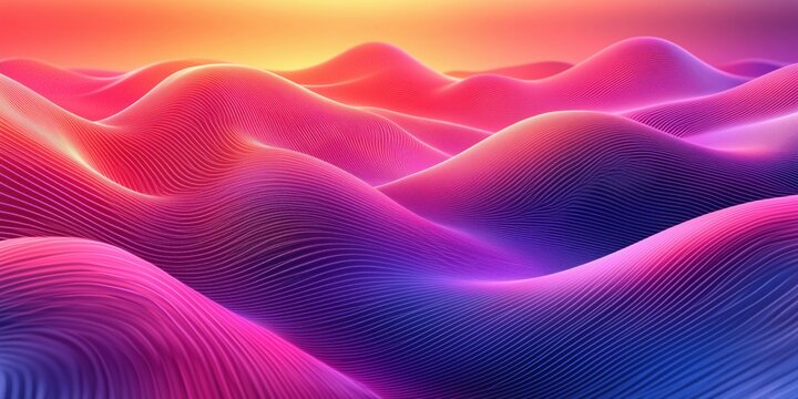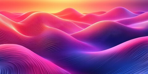 Abstract digital landscape with glowing neon waves and vibrant sunset colors.