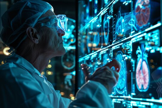 Futuristic Surgeon Analyzing Digital Scan Interface Images