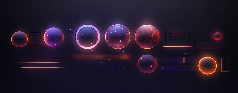 Futuristic Neon Abstract Background with Glowing Circles and Rectangles.