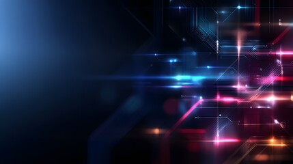 Futuristic abstract tech background featuring glowing circuits, neon accents and dark gradients, perfect for innovative high tech designs and text overlay