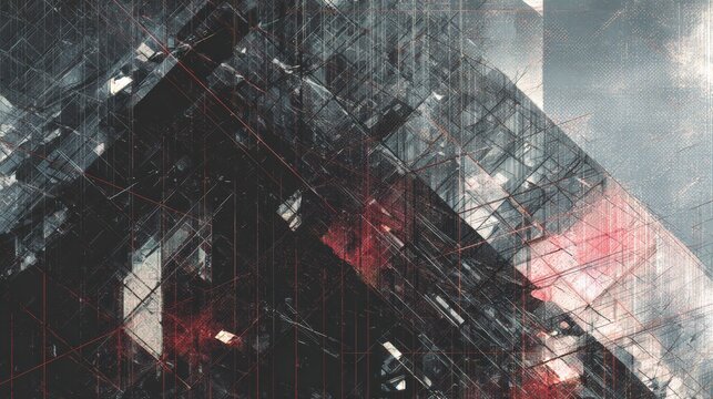 Tech overlays on architecture or abstract digital patterns