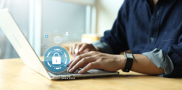 professional man check security system on database with virtual icon dashboard of cyber security for protect and prevent leakage information of company for future technology concept