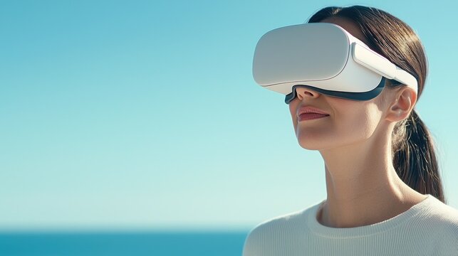 Woman utilizing vr headset for virtual home experience