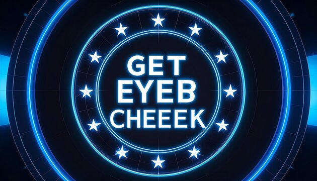High-tech, glowing blue circle with "GET EYEB CHEEK" text
