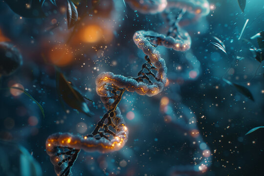 Glowing dna strands and chemical structures with particle effects