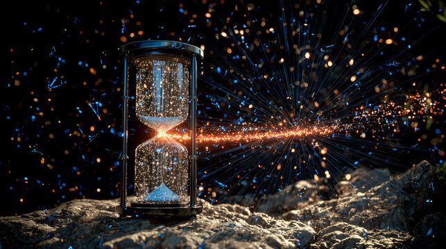 Digital Clock Countdown: A futuristic digital clock displaying the time with vibrant, luminous digits against a dynamic background, representing the concept of time.