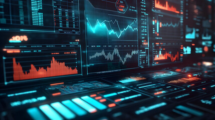 High-tech financial trading dashboard display with data analysis