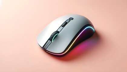 Blank gaming mouse mockup with glowing lights and modern shape on pastel color background, digital gaming accessory mockup