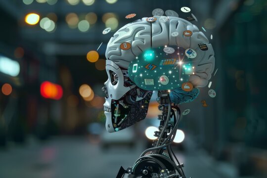 Digital brain and ai concept with technology icons