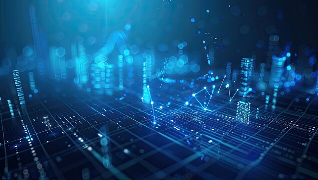 Stock market chart, data visualization and financial analysis in blue tones. Digital graph and analytics for investment strategy, trading, and market trends.
