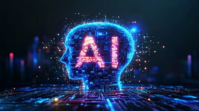 futuristic digital brain surrounded by glowing circuits and lights, symbolizing technology and intelligence. vibrant colors create captivating atmosphere