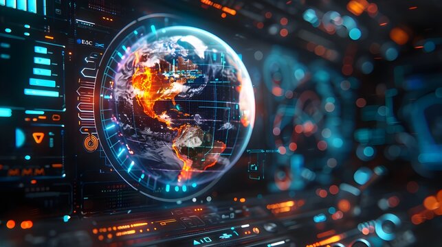 Futuristic cybersecurity dashboard with global data visualization