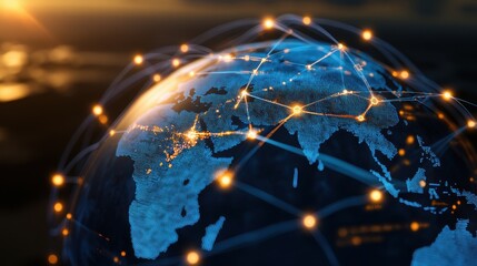 Global Connectivity Concept: Abstract Earth Globe with Digital Network, Technology, and Futuristic Design Elements
